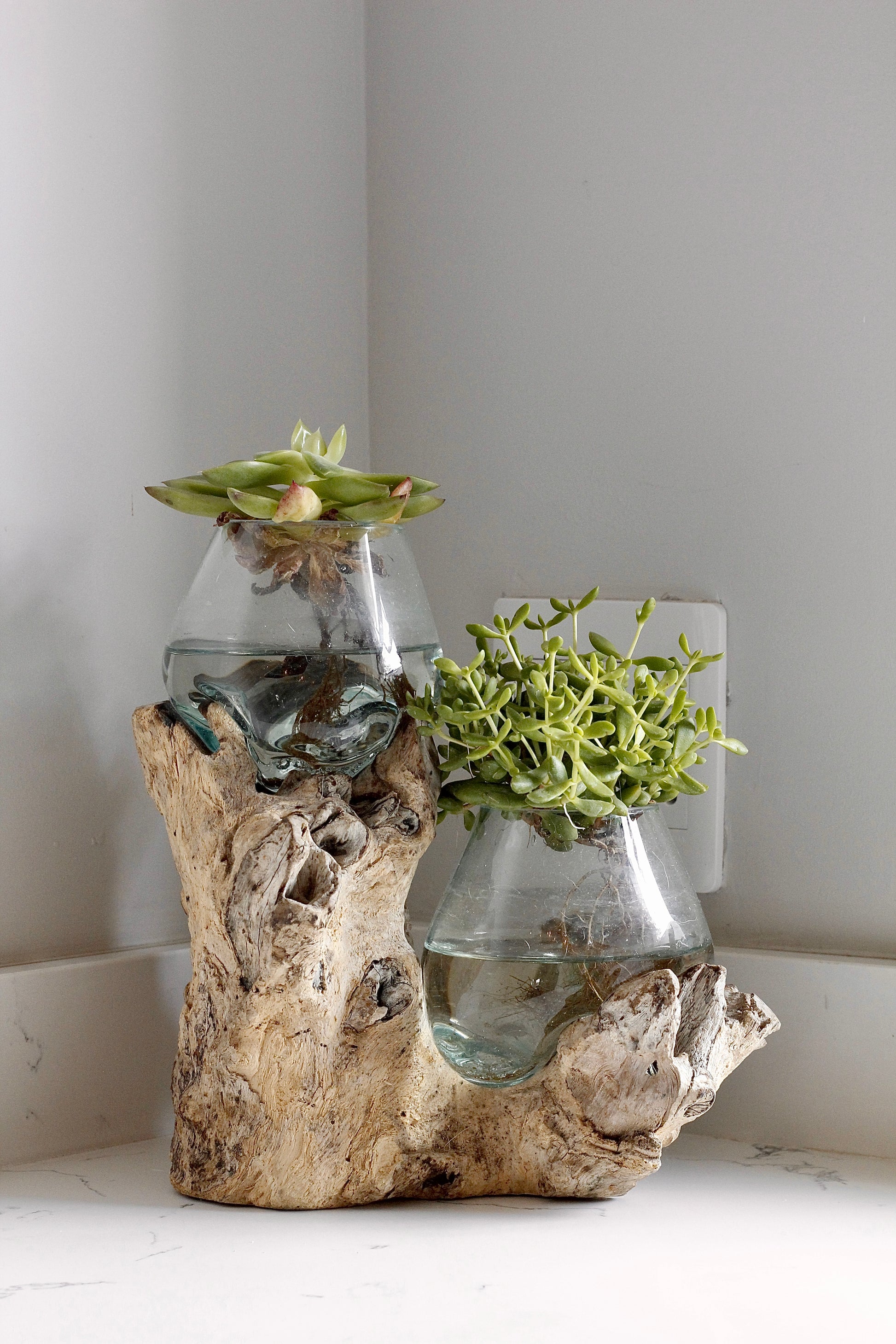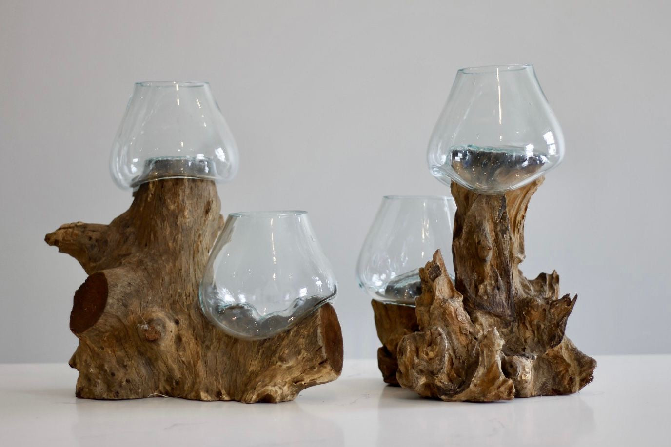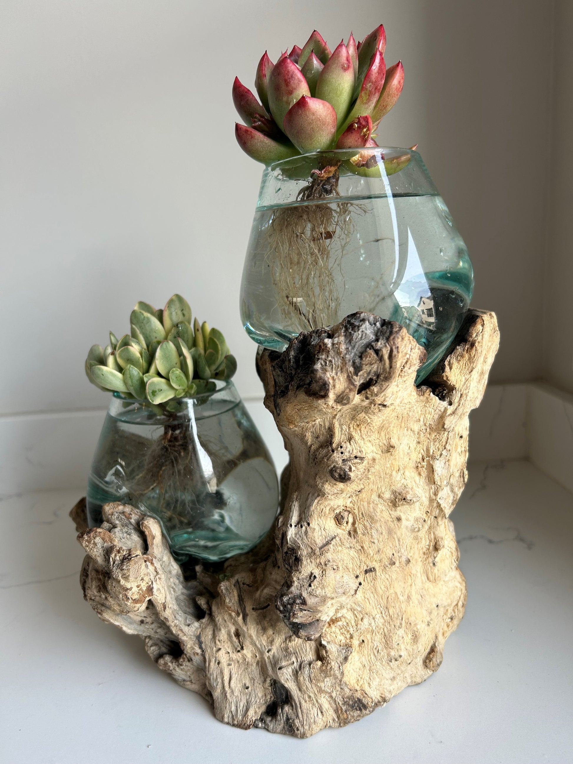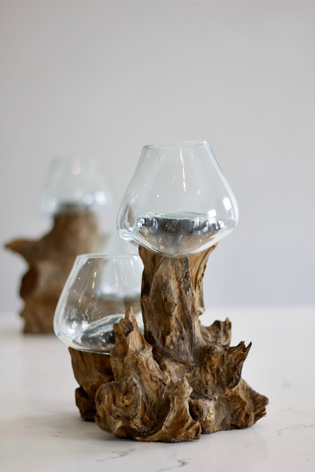 Experience the perfect fusion of elegance and functionality with our molten glass double bowls, perfect for serving snacks, or as decorative pieces filled with fruits, coffee pods, chocolates or flowers/succulents.