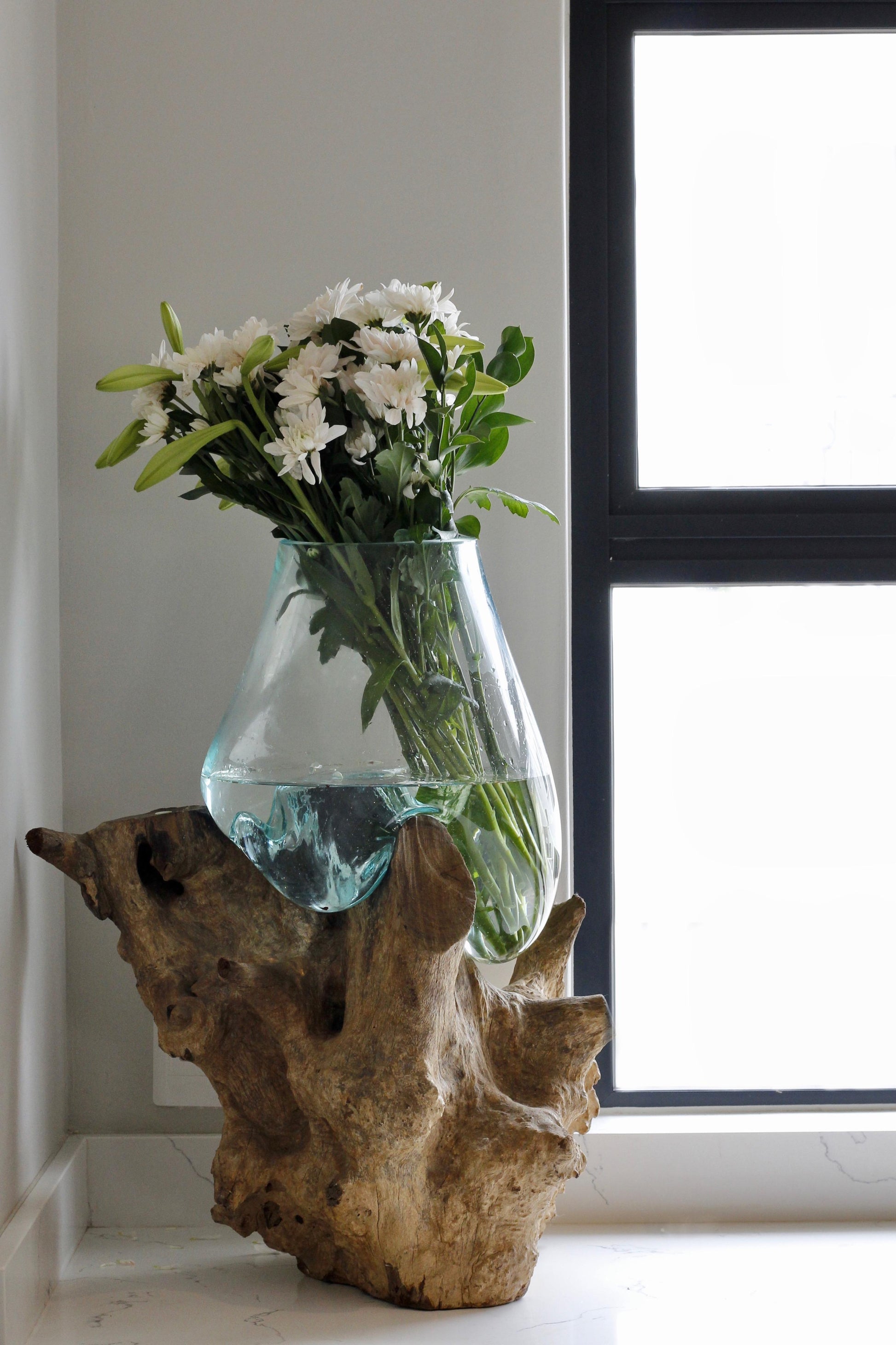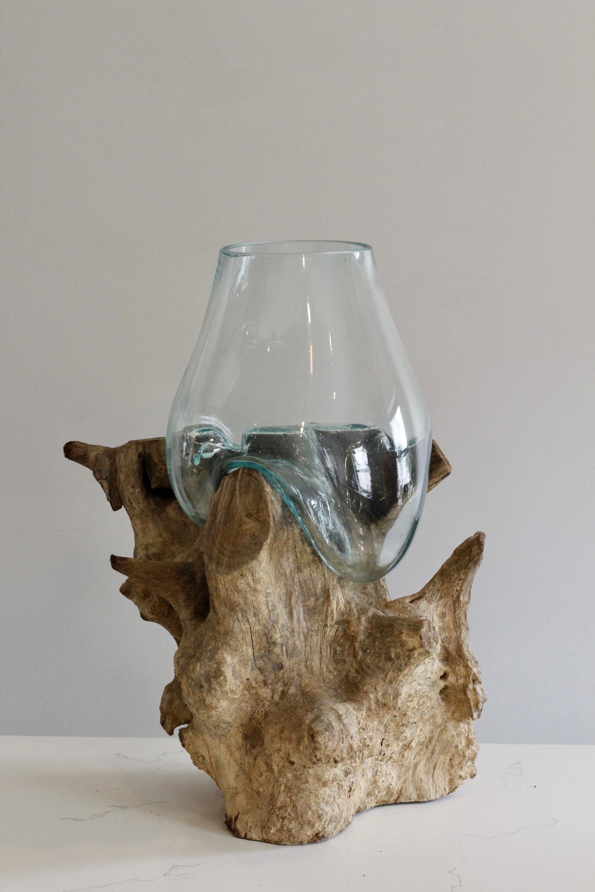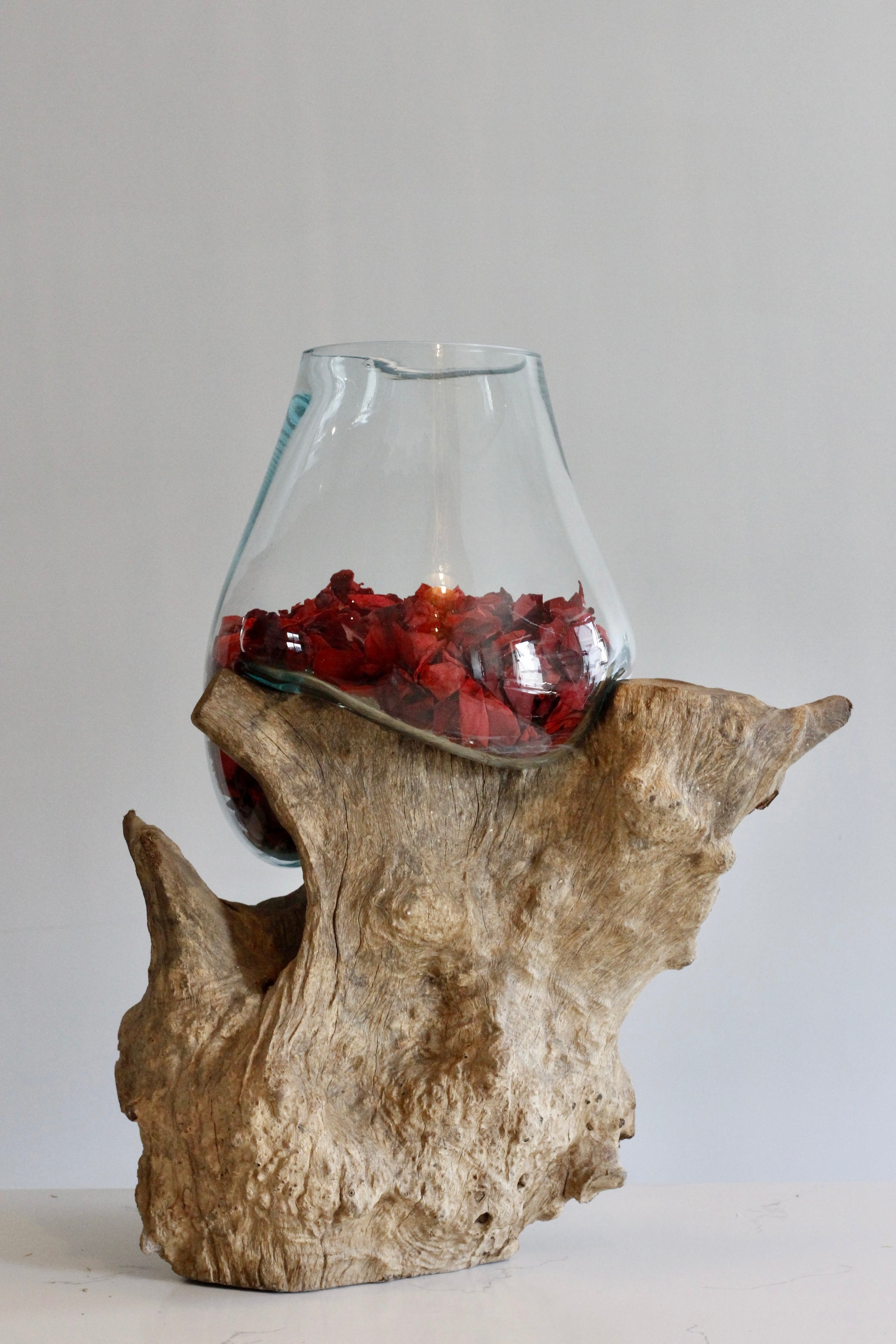 AURA is a wow factor. The warm, earthy tones of the gamal wood provide a stylish and sturdy foundation, adding a touch of natural elegance to your decor. A gift with endless decorative uses including a vase for beautiful flower arrangements, petals, cacti's, plants, fish bowls etc.